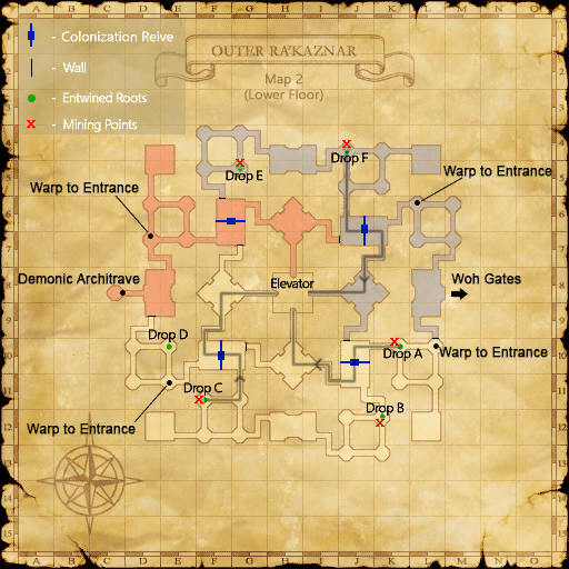 Magma mitigation set: Achuka, entered at (E-5) in Morimar Basalt Fields (nearest bivouac is #5)
