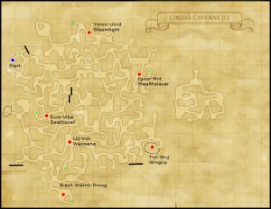 Entering Incursion will take you to Cirdas Caverns (U). There is a 45 minute time limit. Within there are many normal enemies and six Velkk notorious monsters to defeat. The NMs will drop key items to each player present for its defeat. There are 6 key items: