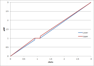 - NOTE: The effective ratio cap is the point where pDIFmin becomes equal to the pre-randomized pDIFmax value.