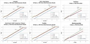 - Archery and Throwing have an unknown ratio cap (perhaps approximately 3.2375)